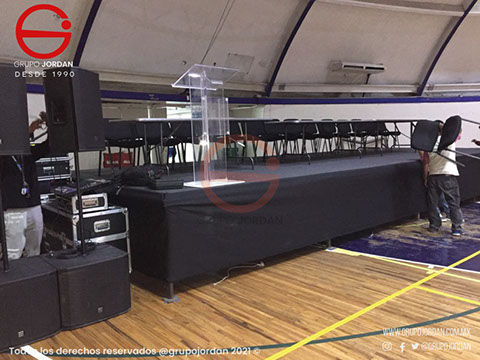 Hemos instalado estrados para conferencias, foros, lanzamiento de productos, escenario para grupos musicales o conferencistas.