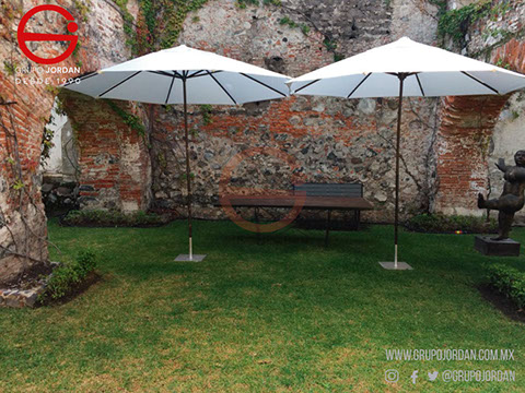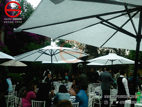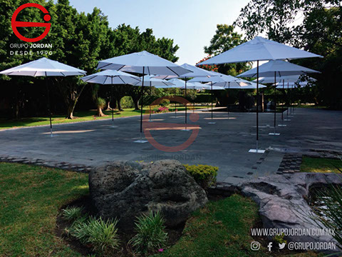 Las tradicionales, con un diseño discreto pero que hacen lucir tu montaje ademas de brindar sombra, se colocan como tu mejor opción.. las puedes montar al centro de la mesa o lateral.